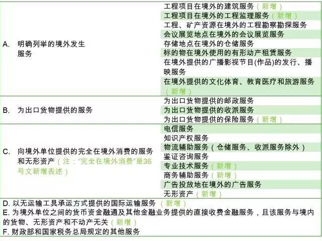 36號(hào)文對(duì)適用免稅的跨境應(yīng)稅行為分為以下類別: