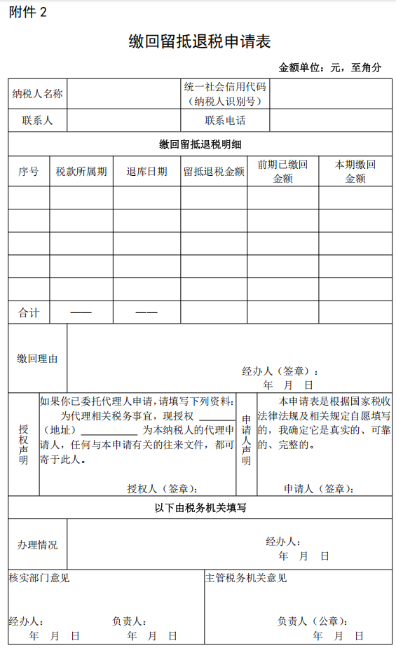 一、本表適用于納稅人按照規(guī)定,申請繳回已退還的增值稅期末留抵稅額退稅款。
